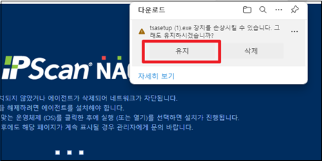 기타 메인으로 이동 기타 학교소개 입학안내 대학 대학원 학사안내 대학생활 동아광장 개교80주년 닫기 기타 기타 Agent 미설치 단말 SNS 목록열기 FACEBOOK 공유하기 TWITTER 공유하기 BLOG 공유하기 KAKAO STORY 공유하기 SNS 목록닫기 인쇄 url 복사 NAC 에이전트 미설치 단말1웹 브라우저 사용 시 아래 페이지로 이동되며 Agent Setup 파일을 다운로드2다운로드 중 아래와 같은 경고가 발생할 수 있으나 ‘계속’ 혹은 ‘유지’ 선택3다운로드 된 파일을 설치할 때 아래와 같은 메시지는 ‘실행’ 선택4설치할 때 아래와 같은 메시지는 ‘예’ 선택